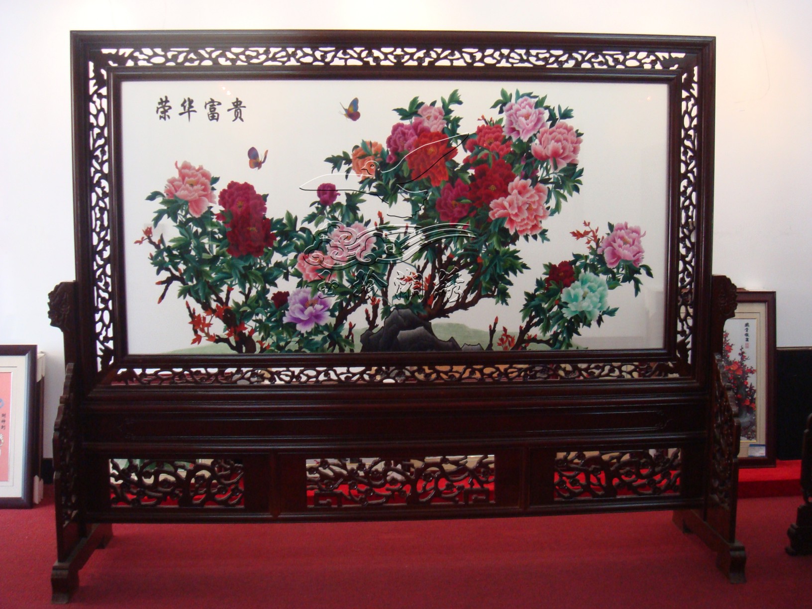 荣华富贵 荣华富贵 产品货号1377 产品尺寸带框:250*197(cm) 框架材质 产品类别双面雕花座屏 咨询电话400-0731-100 产品介绍 湘绣 荣华富贵 分享按钮 更多双面雕花座屏 您可能喜欢 骏马 虎豹异绣-豹子 齐白石虾子 其乐融融 松鹤 孔雀 松鹤延年