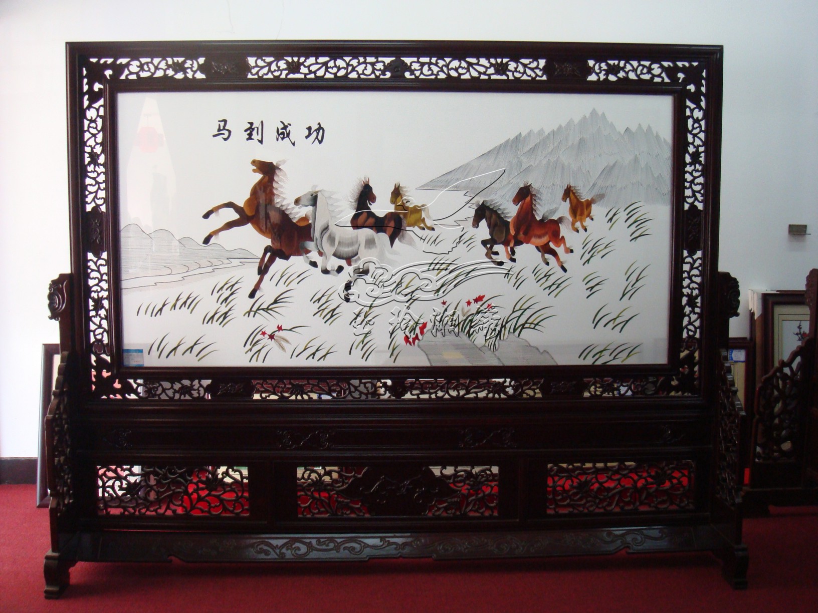 马到成功 马到成功 产品货号1379 产品尺寸带框:250*197(cm) 框架材质 产品类别双面雕花座屏 咨询电话400-0731-100 产品介绍 湘绣 马到成功 分享按钮 更多双面雕花座屏 您可能喜欢 骏马 虎豹异绣-豹子 齐白石虾子 其乐融融 松鹤 孔雀 松鹤延年