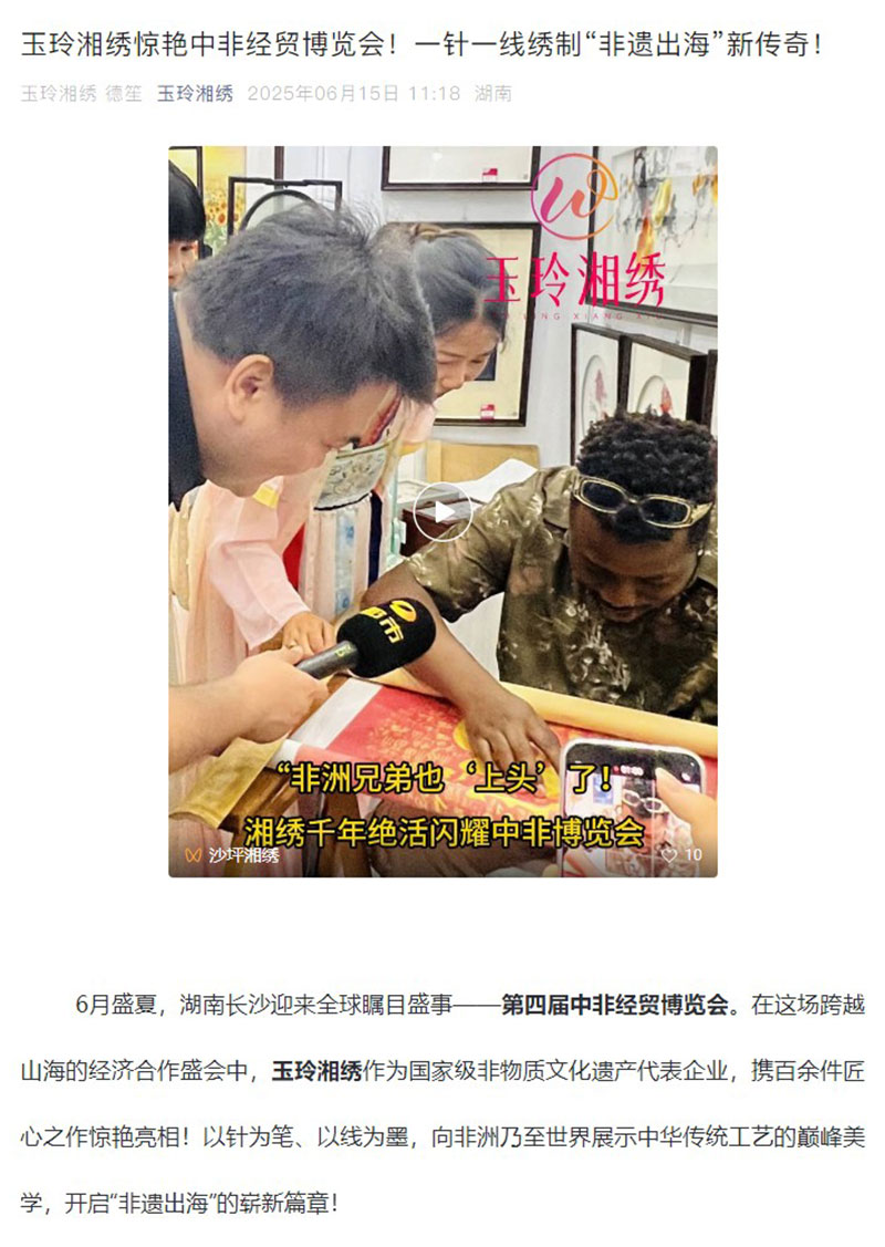 玉玲湘绣惊艳中非经贸博览会!一针一线绣制“非遗出海”新传奇!